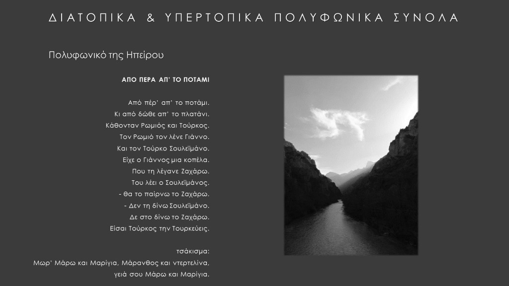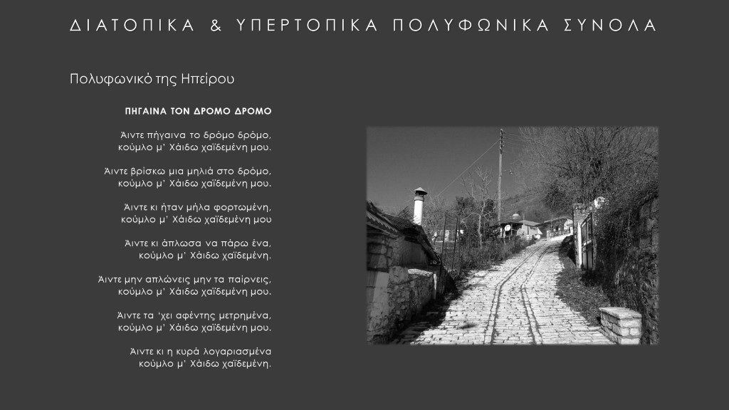 παρουσιαζόμενο πρόγραμμα: Μέρος Β΄, Διατοπικά & Υπερτοπικά Πολυφωνικά Σύνολα | Κτίσματα, δήμος Πωγωνίου, επαρχία Δερόπολης, νομός Ιωαννίνων